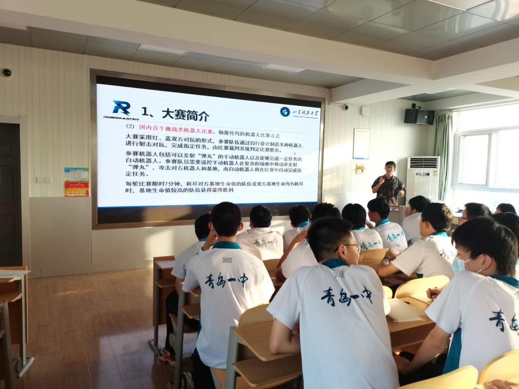 近日,bevictor1946韦德官网bevictor1946韦德官网SmartRobot机器人战队队长王雷带领电控组硬件方向组长李超凡、骨干成员孙振琪,电控组软件方向组长贾科研等人来到青岛一中创新社团,为青岛一中莘莘学子带来了别开生面的科创公开课。
