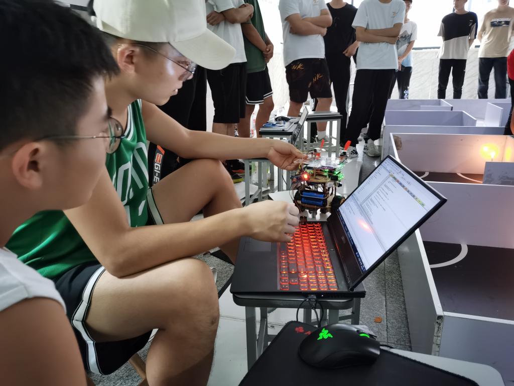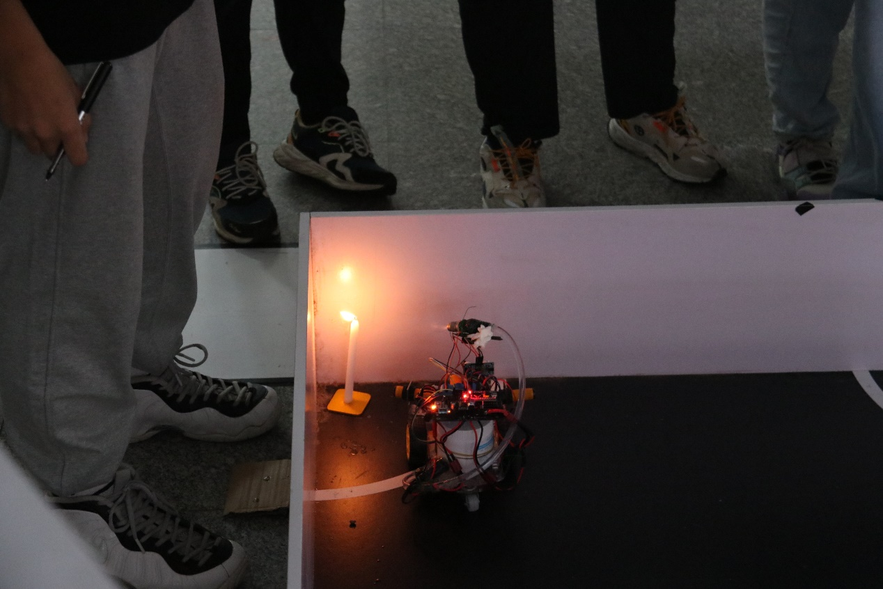 机器人避障是机器人技术中一项最基础也是十分关键的功能,参赛选手的比赛中,第六组选手尤为突出,他们的成功赢得了观众的掌声,而这必不可少的是他们背后的付出。灭火比赛中选手们发挥出色,两赛道的选择为选手提供了更大的发挥空间,在裁判的指挥下,比赛有条不紊的进行。随着选手的上场,一个个灭火机器人沿着特定的轨道出发,完成指定的灭火任务。比赛是一个团队的合作,队员们之间的团结协作是比赛成功的关键,纵使比赛现场的紧张气氛给队员们无形之中增添了压力,他们凭借出色的表现仍然赢得好评如潮。双足比赛的队员们更是团结一致,在比赛中发挥各自的优势,使比赛更加精彩。
