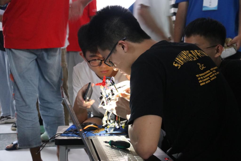 本次机器人大赛主要包括双足、六足竞步机器人,灭火、智能避障避险机器人等各项比赛,共分三个比赛场地进行比赛。参赛前,各队伍再次对机器人进行调试,并根据赛场赛道进行了试练。老师也进行了充分的指导,对比赛要求、记分原则加以说明,消除选手的紧张情绪。