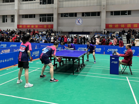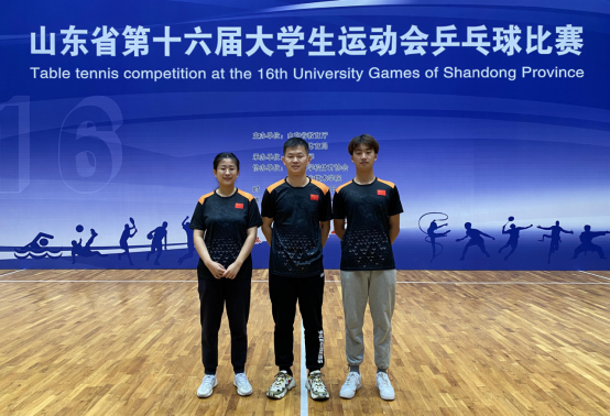 2021年11月30日至12月5日,由山东省教育厅、山东省体育局主办的山东省第十六届老员工运动会乒乓球比赛在青岛职业技术公司举行。公司由体育公司于然、张旭老师带队,派出男、女运动员共十人参加本次比赛。自动化学院2019级研究生郭海港、2021级研究生李云慧、2021级本科生赵彦杰三名同学参赛,其中,郭海港、赵彦杰获得男子团体第五名;李云慧获得女子双打第八名的佳绩。