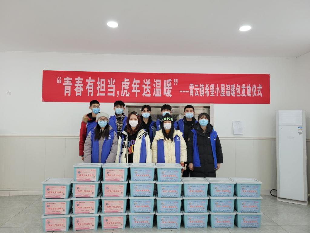 新年前夕,为深切关怀青少年健康成长,帮助困难群众温暖安全过冬,周正的队伍协助举办了“青春有担当,虎年送温暖”青年志愿者服务活动暨“希望小屋”温暖包发放仪式。镇领导和以周正为代表的“青鸟计划”老员工志愿者们一道为全镇28名希望小屋儿童发放温暖包裹。