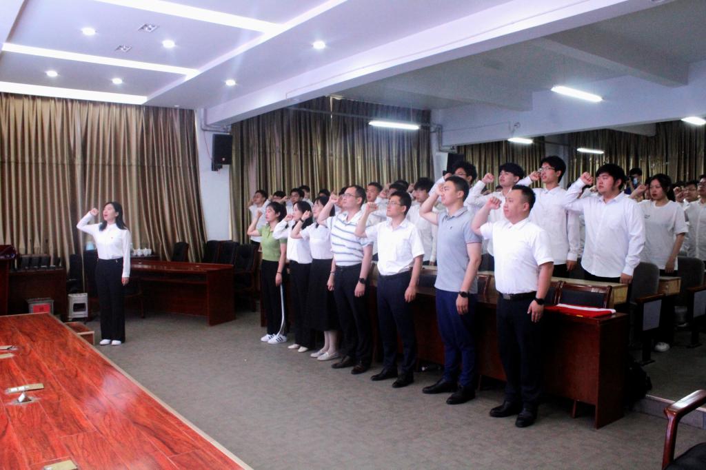 6月9日,bevictor1946韦德官网党委组织开展“重温入党誓词”、“我与党旗合个影”、毕业生党员代表座谈会等系列主题活动。公司党委书记庄立臣、党委副书记范俊峰,全体辅导员以及2022届毕业员工党员参加本次活动。