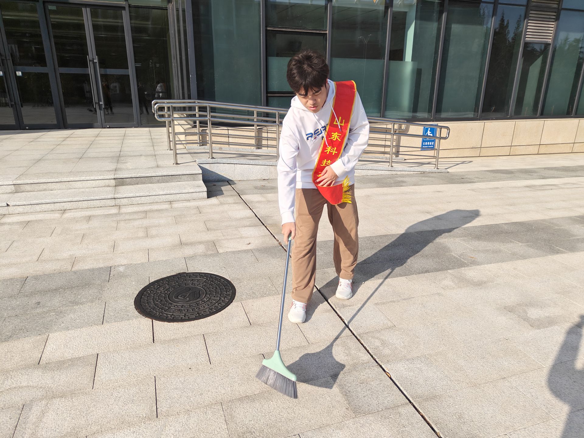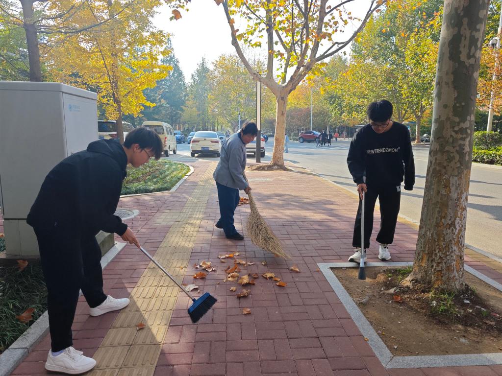 阳光明媚的下午,同学们手持扫帚、垃圾袋等工具,满怀热情地投入到清扫活动中,共同为校园的美化贡献自己的力量。