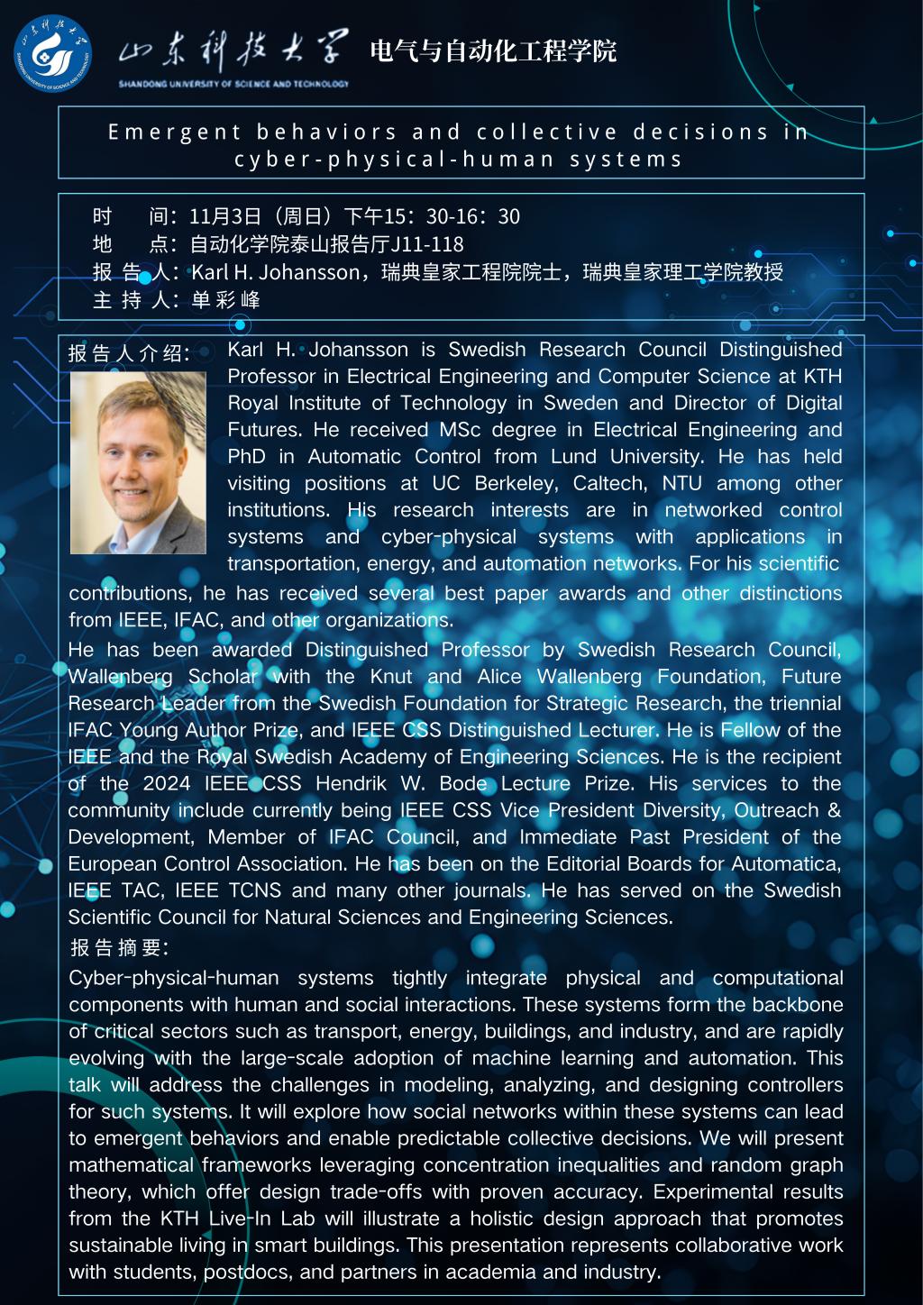 Karl H. Johansson学术报告